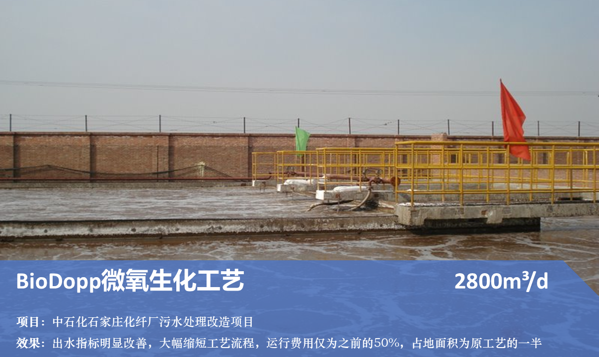 改造效果:经过BioDopp技术改造后,出水指标明显改善,并大幅缩短了工艺流程,运行费用仅为之前的50%,占地面积也比原工艺缩减了一半。