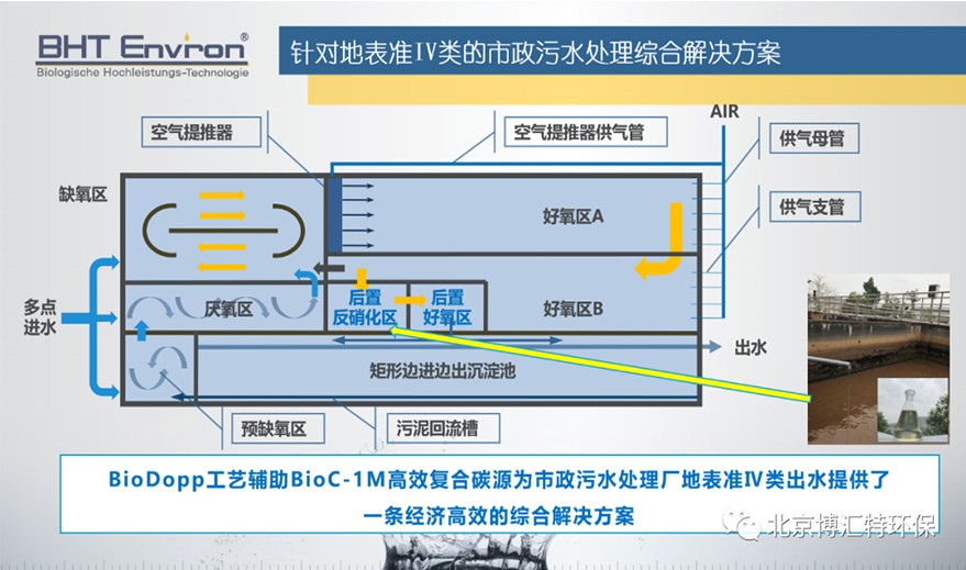 BioDopp工艺结合BioC-1M高效复合碳源科学投加为市政污水处理厂地表准Ⅳ类出水提供了一条经济高效的综合解决方案。