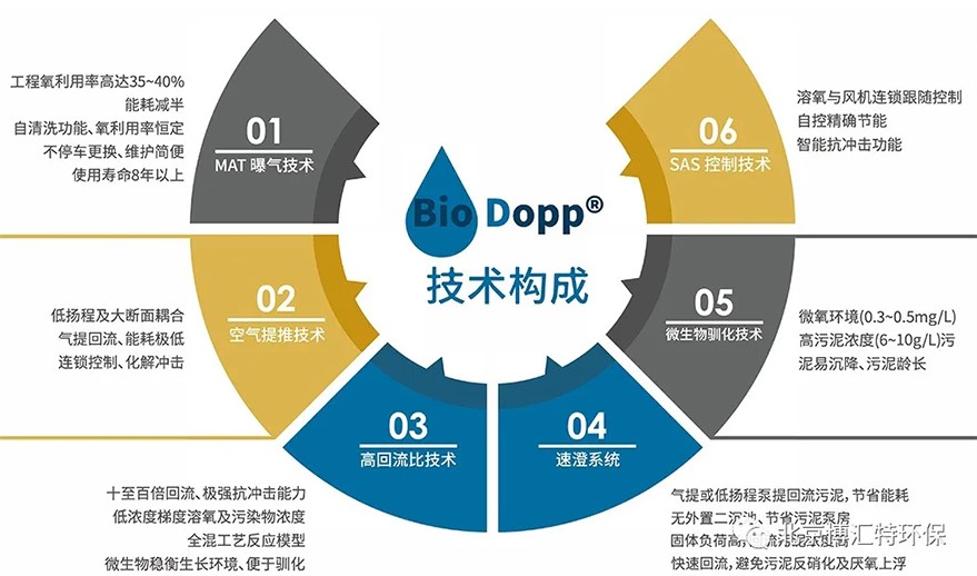 BioDopp工艺初始理念源于德国70年代,2004年进入中国、巴西、南非等发展中国家,2009年后经博汇特固化命名并产业化推广得到高速发展,保持高MLSS和低DO,目前是全球范围内产业化深度最深、规模最大的低氧工艺。