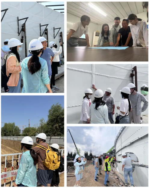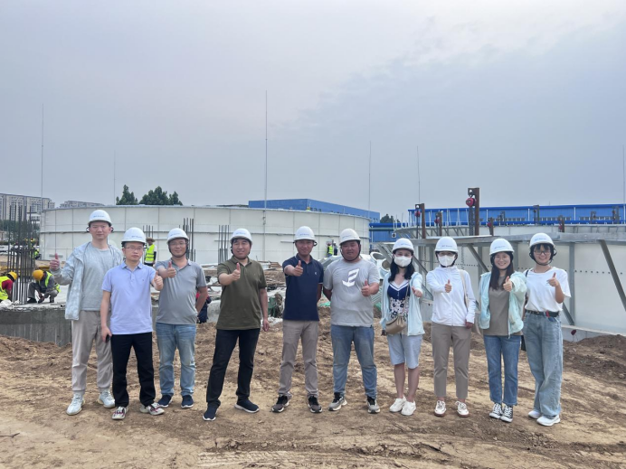 在保障人身安全及施工进度的前提下,工程部经理门坤阔带领大家进入现场,深入学习,直观感受博汇特BMR搪瓷罐外观、材质及搭建等细节,了解BMR污水处理系统建设过程,贯彻理解项目施工、调试到最终竣工验收的整个实施流程。