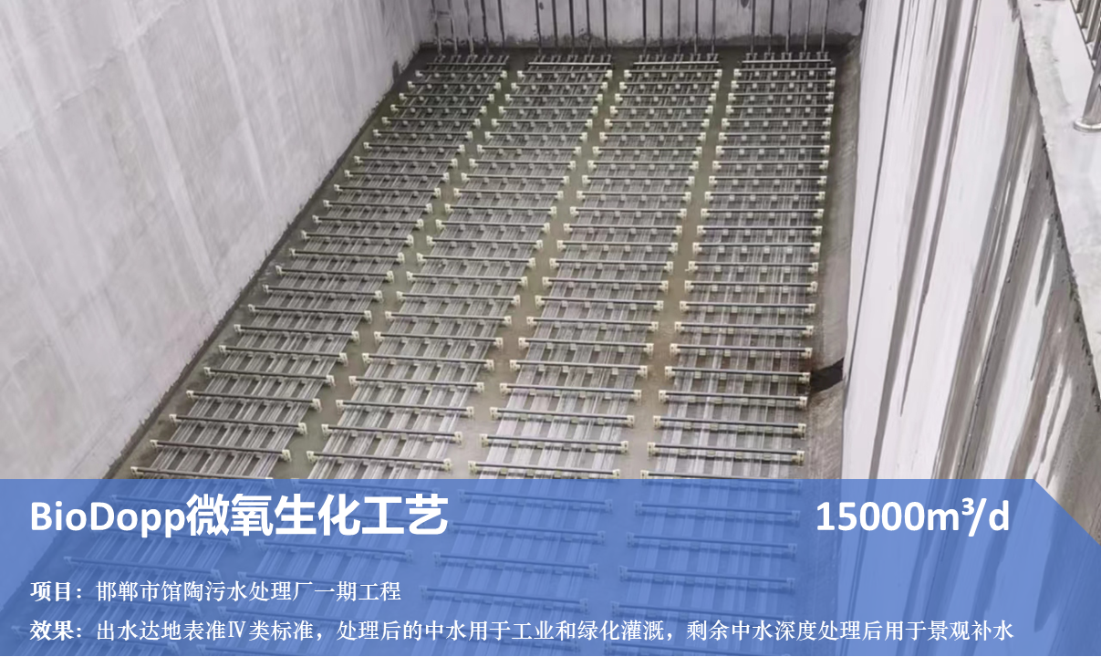 改造效果:经过BioDopp技术改造后,出水指标明显改善,并大幅缩短了工艺流程,运行费用仅为之前的50%,占地面积也比原工艺缩减了一半。
